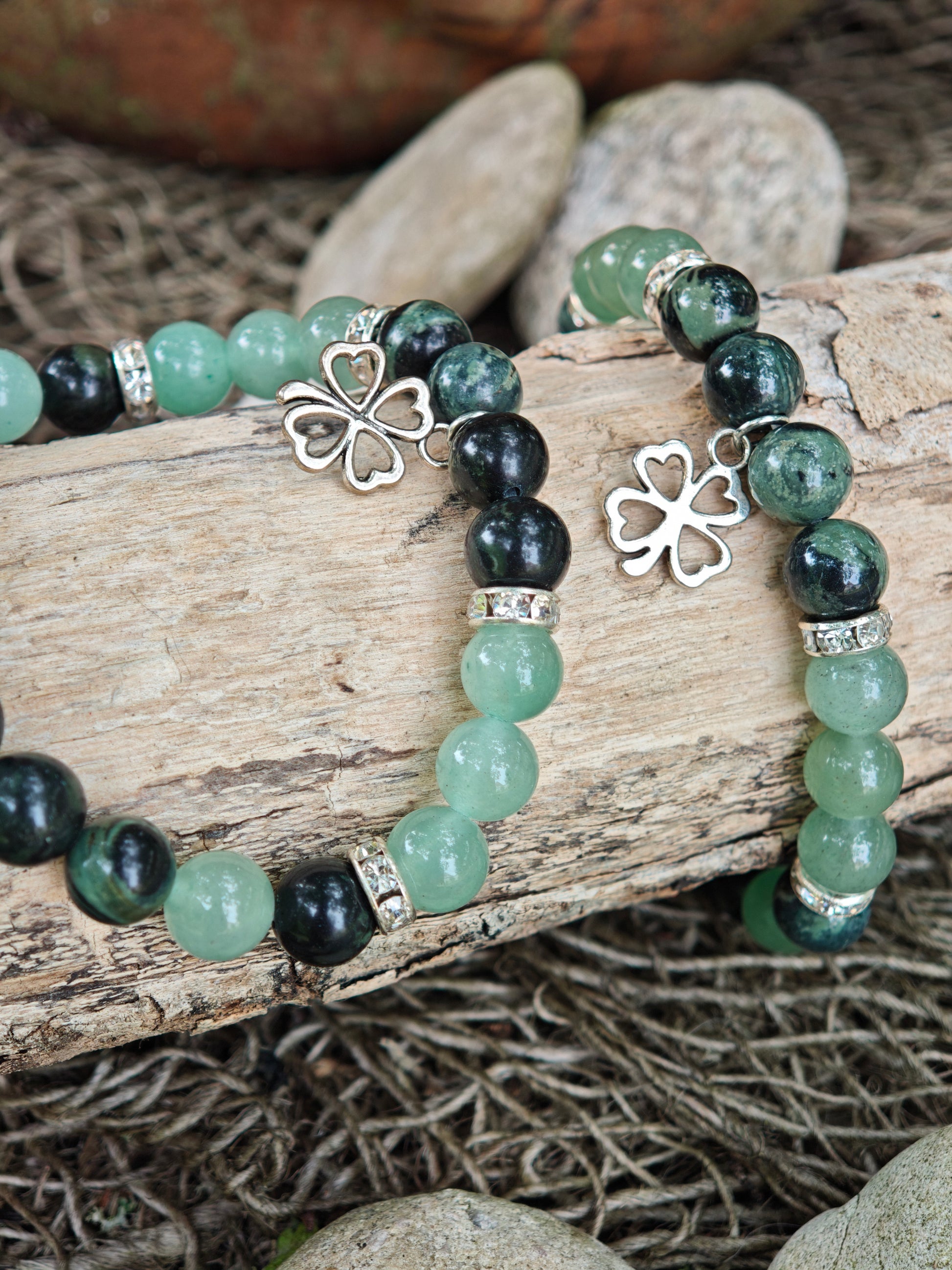 Armband Aventurin grün & Kambaba-Jaspis mit Kleeblatt