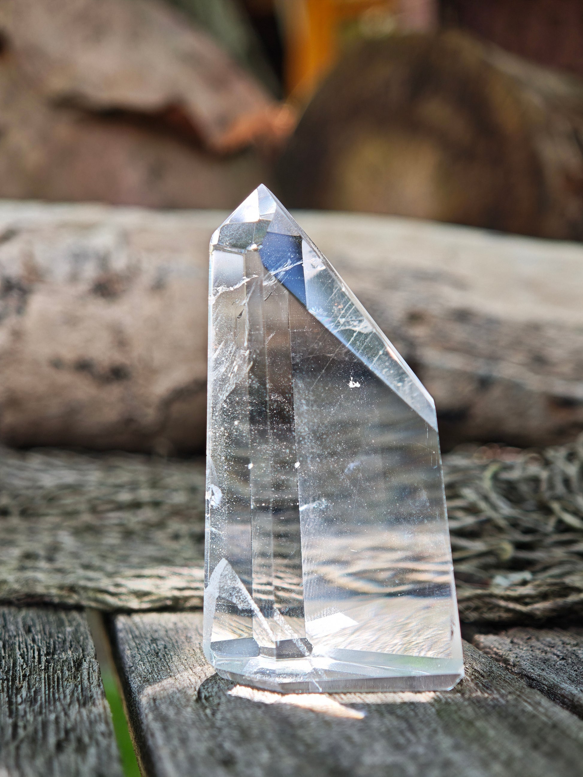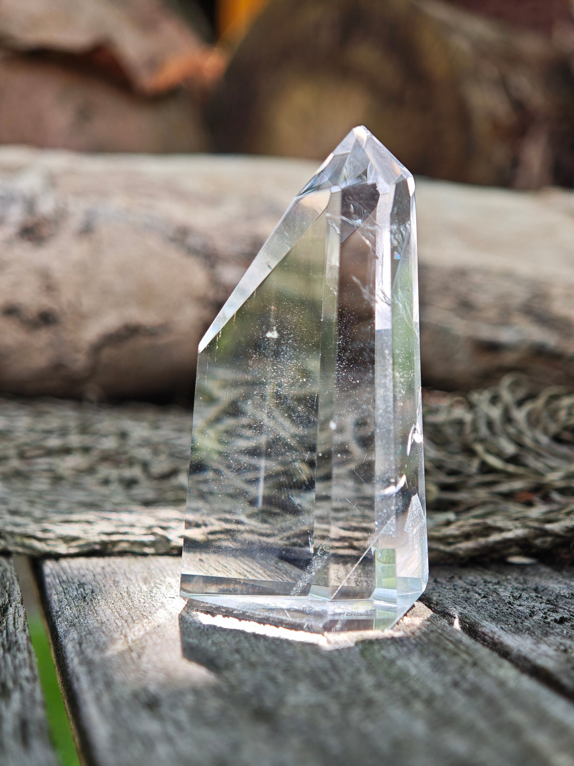 Dieser Bergkristall besticht durch seine außergewöhnliche Klarheit und Brillanz – so durchsichtig, dass man fast das Gefühl hat, in reines Licht zu blicken. Jeder Facettenschliff fängt das Licht anders ein und lässt es im Inneren des Steins tanzen. Diese Reinheit und Transparenz machen ihn zu einem ganz besonderen Einzelstück.