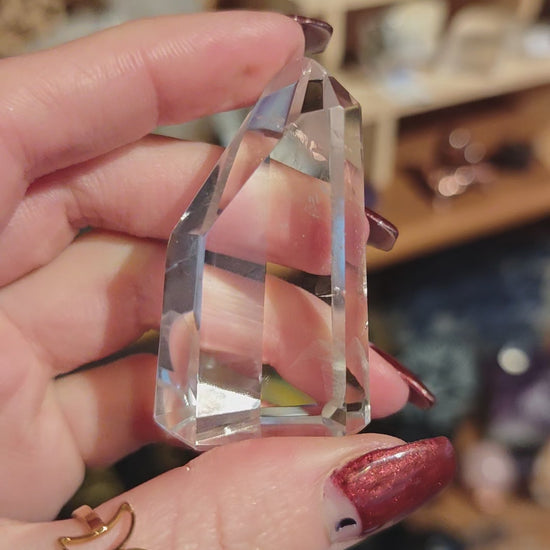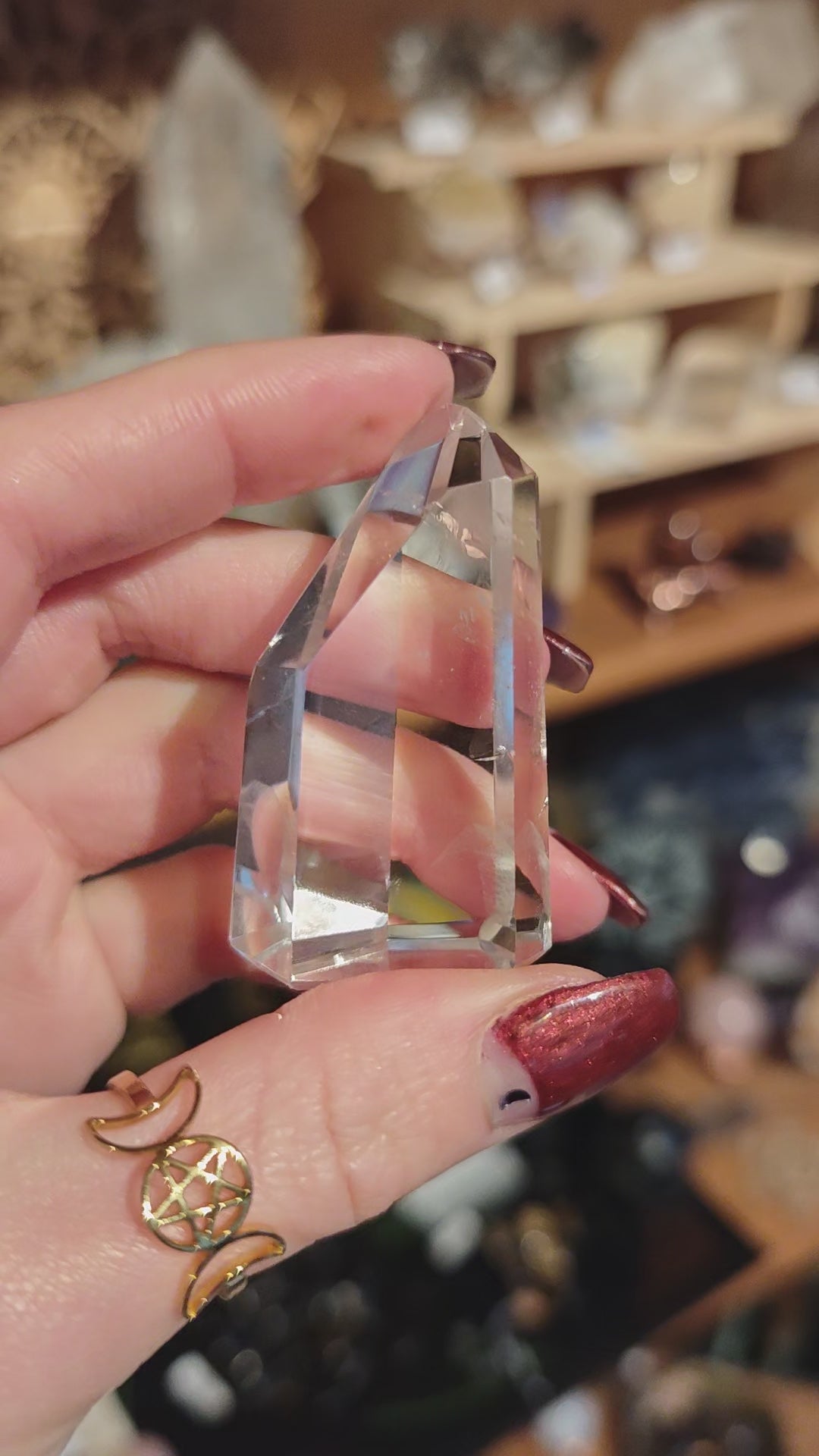 Mit seiner Höhe von etwa 5,5 cm liegt er angenehm in der Hand und ist ein wunderschönes Element für Meditation, Altararbeit oder als strahlender Mittelpunkt in deiner Kristallsammlung. Die polierte Oberfläche und präzisen Facetten unterstreichen die natürliche Schönheit des Steins, ohne seine ursprüngliche Energie zu verfälschen.