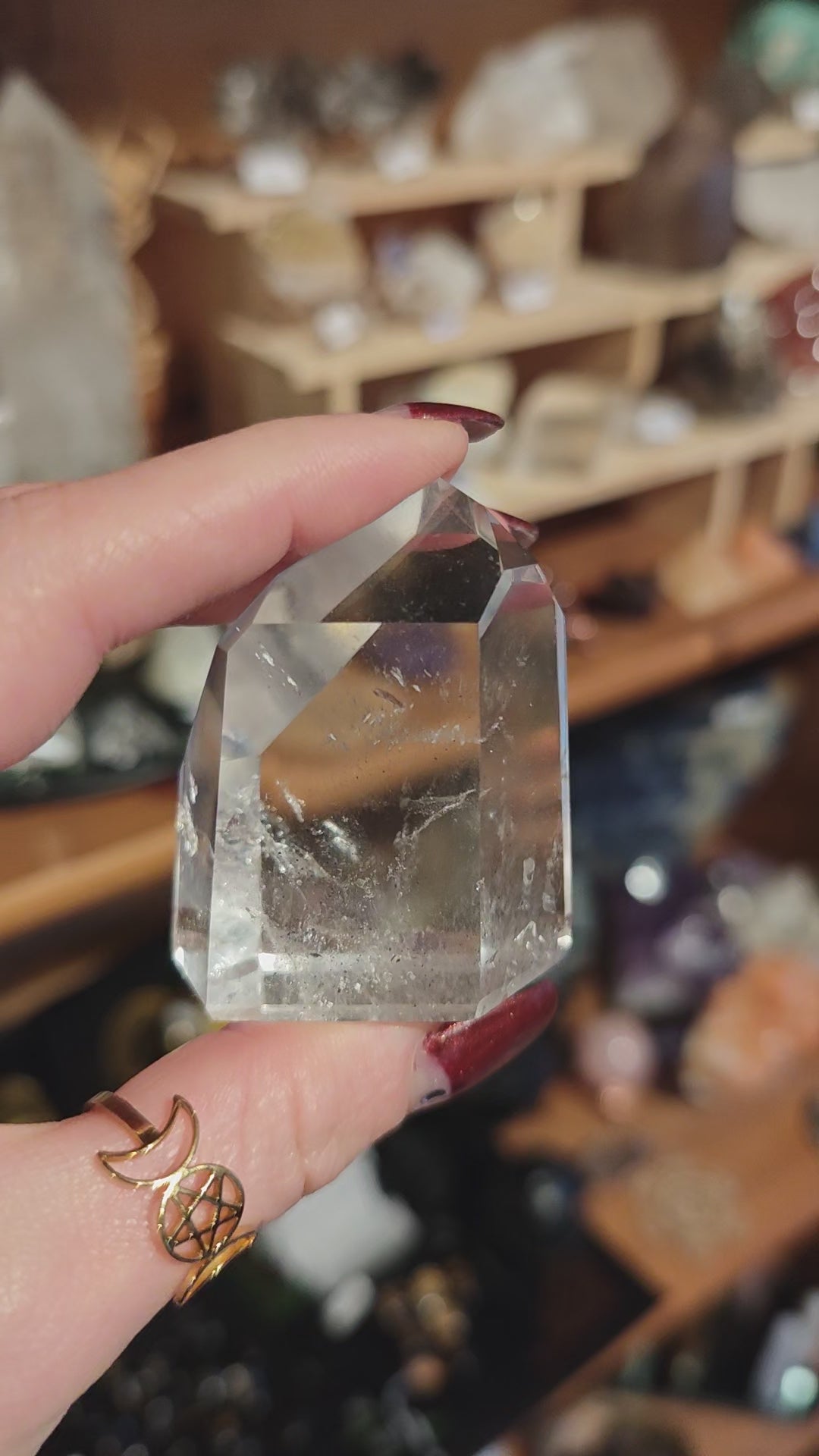 Der Bergkristall steht für Bewusstheit, Fokussierung und innere Balance. Er soll helfen, Gedanken zu klären, Intuition zu stärken und Energien zu harmonisieren. Durch die präzise geschliffene Spitze bündelt sich seine Energie besonders intensiv – ideal für Meditation, Kristallgitter oder als Zentrum auf deinem Altar.
